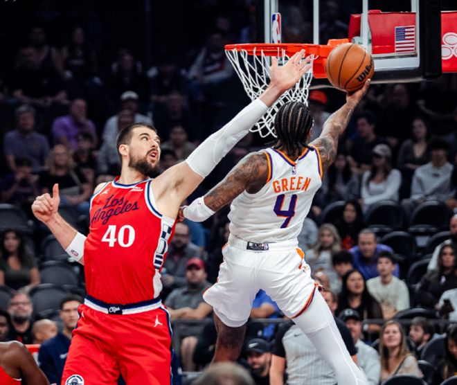 此战太阳方面狄龙继续缺阵,杰伦格林复出,迎来太阳生涯首秀,快船方面哈登、伦纳德缺阵,上半场比赛靠着祖巴茨的强势发挥,快船稍占上风,半场战罢快船领先3分。第三节比赛太阳完胜快船,单节赢了17分,三节战罢太阳领先14分。第四节太阳快速扩大优势,分差来到25分。杰伦格林就此打卡下班,快船替补追回一些分差,最终太阳115-102击败快船。